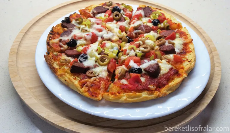 Bazlama pizza tarifinin videosu için bereketli sofralar youtube kanalını ziyaret edebilirsiniz. Videoyu beğenmeyi ve kanala abone olmayı unutmayın. Canınız kolay ve lezzetli bir şeyler hazırlamak isterse bazlama pizza size göre bir tarif. O kadar kolay hazırlanıyor ki sonuçta ortaya çıkan lezzet sizi şaşırtacak. Bu tarifi nette ilk gördüğümde kolay bir tarif diye denemek istedim ama sonucun bu kadar lezzetli olacağını düşünmemiştim. Yani neredeyse bu pizzayı bazlamadan yaptığınızı söylemeseniz kimse anlamaz. Pizzanın üstünde istediğiniz malzemeleri kullanabilirsiniz. Üzeri için kullandığım sosu siz damak tadınıza göre değiştirebilirsiniz. Salça yerine domates sosu kullanabilirsiniz. Ben daha önce domates sosuyla denedim ve öylede çok lezzetli oldu. Sosun içinde az toz şeker kullandım. Domates salçasını sade kullanınca biraz ekşimsi olabiliyor. İçine toz şekeri ekleyince daha lezzetli oldu ama isterseniz kullanmayın. Bazlama pizza tarifini mutlaka deneyin. Şimdiden afiyet olsun.