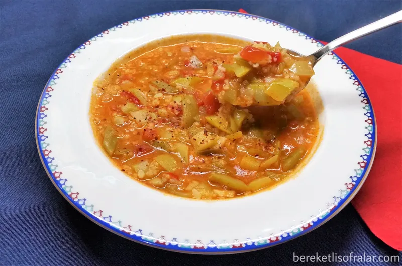Bulgurlu yaz çorbası çok lezzetli ve oldukça da besleyici bir çorba. İçinde kullandığım sebzelerin hepsinin tam mevsimi olduğu için ortaya nasıl lezzetli bir çorba çıkıyor anlatamam. Aslında çorba diyorum ama neredeyse tam anlamıyla bir yemek gibi. Bulgurlu yaz çorbasının içinde isterseniz fasulye ya da kabağın birini kullanarak da hazırlayabilirsiniz. Öylede çok lezzetli oluyor. İsterseniz patateste kullanabilirsiniz. İçinde kullandığım yağ çok değil ama siz daha az kullanarak diyet bir çorba haline de getirebilirsiniz. Şimdiden afiyet şifa olsun.
