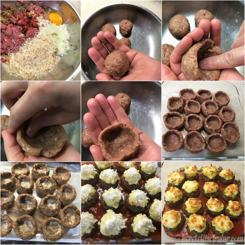 Malzemeler: 450-500 gr kıyma (az yağlı) 1 yumurta 1 orta boy soğan 1 iri diş sarımsak 2 dilim bayat ekmek Karabiber Pul biber Kimyon Kaya tuzu Yarım su bardağı kadar rendelenmiş kaşar peyniri Püre Malzemesi: 3 tane orta boy patates 1,5 çay bardağı süt 1 yemek kaşığı tereyağı Sos Malzemesi: 1 tepeleme yemek kaşığı salça 1 yemek kaşığı sıvı yağ 1,5 su bardağı su Hazırlanışı: Patatesleri haşlayıp suyunu süzün ve ezin. Ocağın üzerine alıp tereyağı ve sütü yavaş yavaş ilave edip orta ateşte karıştırın. Patatesi haşlarken tuz eklemediyseniz bu arada ilave edin. İstediğiniz kıvama gelmediyse süt ölçüsünü çok az daha artırabilirsiniz. Kuru soğanı çok küçük doğrayın ya da rendeleyin ve suyunu elinizde sıkıp karıştırma kabına alın. Bayat ekmekleri robotta veya rondoda çekin. Sarımsağı rendeleyin. Karıştırma kabına kıyma, yumurta, çekilmiş bayat ekmek, rendelenmiş sarımsak, doğrayıp suyunu sıktığınız soğanı alın. Üzerine karabiber, pul biber, kimyon, tuzu ilave edip iyice yoğurun. Eğer kıymanız tamamen yağsızsa yoğururken içine 1 veya 2 yemek kaşığı sıvıyağ ekleyebilirsiniz. İyice yoğurduğunuz köfte harcını vaktiniz varsa buzdolabında dinlenmeye bırakabilirsiniz ya da hemen yapabilirsiniz. Hazırladığınız köftelerden mandalinadan büyük parçalar alıp elinizde yuvarlayın. Sonra parmaklarınızın yardımıyla bir çanak şekli verip yağlanmış fırın tepsisine yerleştirin. Önceden ısıtılmış 190-200 derece fırında köfteler az kızarana kadar pişirin. Köfteleri çok kızartmayın yoksa çok kuru köfteler olur. Köfteler kızarırken sıvı yağ ve salçayı bir tavaya alıp biraz kavurun. Üzerine suyu ilave edip kaynayınca ocağı söndürün. Kızaran köfteleri fırından çıkarın ve ortalarına hazırladığınız patates püresini bir tatlı kaşığı yardımıyla yerleştirin. Pürelerin üzerine rendelenmiş kaşar peynirini yerleştirin. Köftelerin kenarından hazırladığınız salçalı sosu tepsiye ekleyin. Tepsiyi tekrar fırına alıp kaşarların üzeri az kızarana kadar bekletin. Sonra fırından çıkarıp sıcak sıcak servis edin. Afiyet olsun.