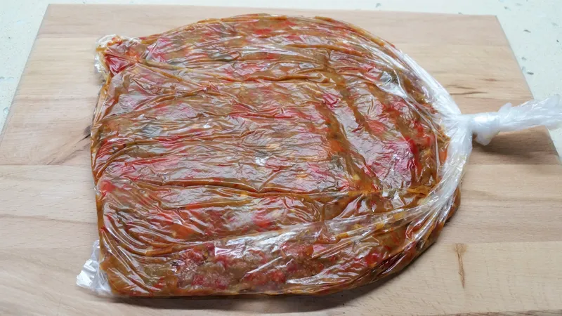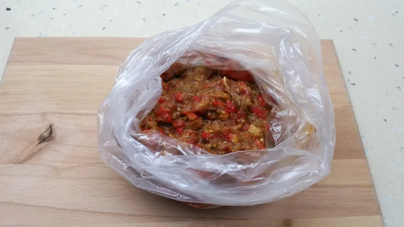 Malzemeler: 10-11 tane orta boy patlıcan 4 tane kapya biber 2 orta boy domates 8-9 iri diş sarımsak Yarım çay bardağı Pul biber Karabiber Kaya tuzu