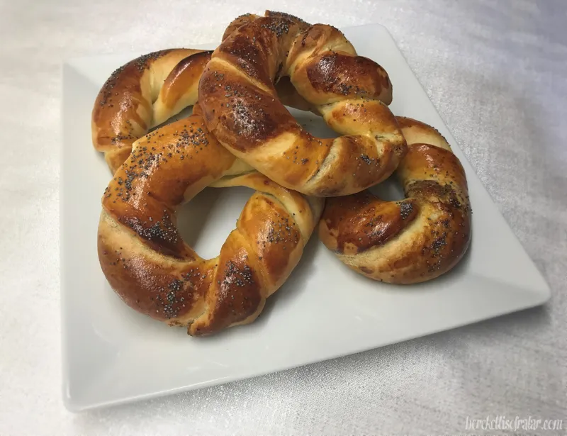 Malzemeler: 1 su bardağı ılık süt Yarım su bardağı sıvı yağ Yarım su bardağı ılık su 1 tam yumurta + 1 yumurtanın beyazı (sarısını üzerine kullandım) 1 silme tatlı kaşığı tuz 1,5 yemek kaşığı toz şeker Yarım paket yaş maya Aldığı kadar un İç Malzemesi: 1 su bardağı kadar haşhaş ezmesi 5-6 yemek kaşığı sıvı yağ Üzerine sürmek için: 1 yumurta sarısı Yarım çay kaşığı yoğurt Yarım çay kaşığı toz şeker Mavi haşhaş Hazırlanışı: El yakmayacak kadar ılık suyu karıştırma kabına alın ve içine yaş mayayı atıp ezin. Üzerine toz şekeri ekleyerek iyice karıştırın. Ilık süt, sıvı yağ, 1 yumurta + 1 yumurtanın beyazı ve tuzu ekleyip iyice karıştırın. Üzerine unu yavaş yavaş ilave edip yoğurun. Elinize yapışmayacak kulak memesinden yumuşak bir hamur oluncaya kadar unu ekleyip yoğurmaya devam edin. İyice yoğurduktan sonra hamurun üzerini hava almayacak şekilde kapatıp mayalanmaya bırakın. Hamur iki katına çıkana kadar bekleyin. Haşhaşın içine sıvı yağ ekleyerek bir kaşık yardımıyla karıştırın ve sürülebilecek bir kıvama getirin. Ceviz içini biraz iri parçalar olacak şekilde çekin. Hamur mayalanınca mandalina büyüklüğünde parçalar koparıp elinizle yuvarlayarak beze yapın. Tezgahın üzerini çok az yağlayıp hamur bezelerini buraya alın. Yağladığınız tezgahda hamuru elinizle pasta tabağı büyüklüğünde açın. Elinizi arada yağa sürerseniz daha kolay açarsınız. Sonra yağla açtığınız haşhaşı hamurun üzerine sürüp az ceviz serpin. Hamuru yuvarlayarak bir rulo haline getirin iki ucunu birbirinin tersi yönünde kıvırın. Bir halka oluşturacak şekilde uçları birleştirip birbirinin altından geçirip hamuru yapıştırın. Hazırladığınız açmaları yağlı kağıt serilmiş tepsiye alın. Yumurta sarısı, yoğurt ve toz şekeri karıştırıp açmaların üzerine sürün. Son olarak açmaların üzerine mavi haşhaşı serpip 15- 20 dakika tepside mayalandırın. Önceden ısıtılmış 180 derece fırında üzerleri kızarana kadar pişirin. Haşhaşlı açmalar kızarınca fırından çıkarıp sıcak sıcak servis edin. Afiyet olsun.