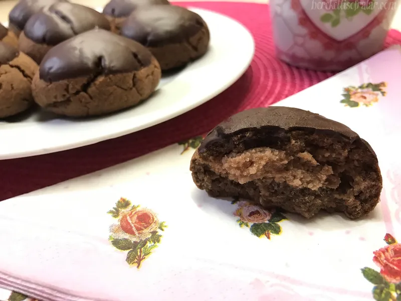 Hazırlanışı: Kestaneli kurabiye için önce kestaneli içi hazırlayarak başlayın. Kestaneleri yıkayıp bir bıçak yardımıyla çok derine inmeden üzerine çizikler atın. Orta büyüklükte bir tencereye önce kaynar suyu alıp toz şeker, tuz ilave edip ve üzerine yavaş yavaş kestaneleri ekleyin. Kestanelerin hepsini birden atarsanız kaynaması durur ve kestaneler güzel haşlanmaz. Yaklaşık 25-30 dakika orta ateşte kaynatın ve bir çatal yardımıyla kestanelerin pişip pişmediğini kontrol edin. Kestaneler pişince bir süzgece alıp suyunu süzün ve üzerine soğuk su dökün. Elinizi tutabilecek sıcaklığa gelince önce dışındaki kalın kabuğu sonrada iç kısmındaki zar gibi olan bölümü soyun. Kestaneleri soyarken parçalanabilir bu hiç önemli değil zaten içini hazırlarken parçalanacak. Bir cezveye ya da uygun bir kaba 1 su bardağı toz şeker ve 1 su bardağını alıp kaynatın. Kaynamaya başladıktan sonra yaklaşık 18-20 dakika kısık ateşte kaynatın ve oldukça katı kıvamlı bir şerbet elde edin. Bir kenarda soğumaya bırakın. Ayırıp hazırladığınız kestaneleri bir rondoya ya ada robota alıp parçalayın. Üzerine vanilya ve kakaoyu ilave edip karıştırın. En son olarak hazırlayıp soğuttuğunuz şerbeti yavaş yavaş ilave edin. Şekil verilecek bir kıvama gelinceye kadar ilave ederek robotta çekmeye devam edin. Bir karıştırma kabına oda sıcaklığında beklemiş tereyağı, yumurta, pudra şekerini alıp iyice karıştırın. Sonra üzerine 1-2 su bardağı un, kakao ve vanilyayı ilave edip yoğurmaya devam edin. Sonra elinizde yapışmayacak bir kıvama gelinceye kadar un ilave etmeye devam edin. Hamurun kıvamı şekil verilebilecek kıvamda olsun. Bunun için unu kontrollü ekleyin. Hazırladığınız hamurdan ceviz büyüklüğünde parçalar alıp elinizde yuvarlayın. İçini elinizde açarak kestane ezmesinden içine sığacak büyüklüğünde parçalar alıp kurabiyenin içine yerleştirin. İsterseniz kestane ezmesinden kurabiyenin içine sığacak büyüklükte parçalar alıp yuvarlayıp hazırlayın ve kurabiyenin içine yerleştirin. Elinizle yavaş yavaş hamuru kapatıp yuvarlayın ve hafifçe iki avcunuzun ortasında bastırarak biraz yassıltın. Yağlı kağıt serilmiş tepsiye alıp önceden ısıtılmış 170 derece fırında 20 dakika kadar kızartın. Kurabiyelerin pişip pişmediğini kontrol edip fırından çıkarın ve soğumaya bırakın. Bitter çikolatayı küçük parçalara ayırın. Bir kasenin içine alın ve kaynar su dolu bir kabın üzerine yerleştirin. Çikolatayı benmari usulü eritip içine tereyağını ekleyin. İyice karıştırın ve soğuyan kurabiyelerin üst kısmını çikolataya batırıp alın. Çikolatalar donuncaya kadar bekletip servis edin. Afiyet olsun.
